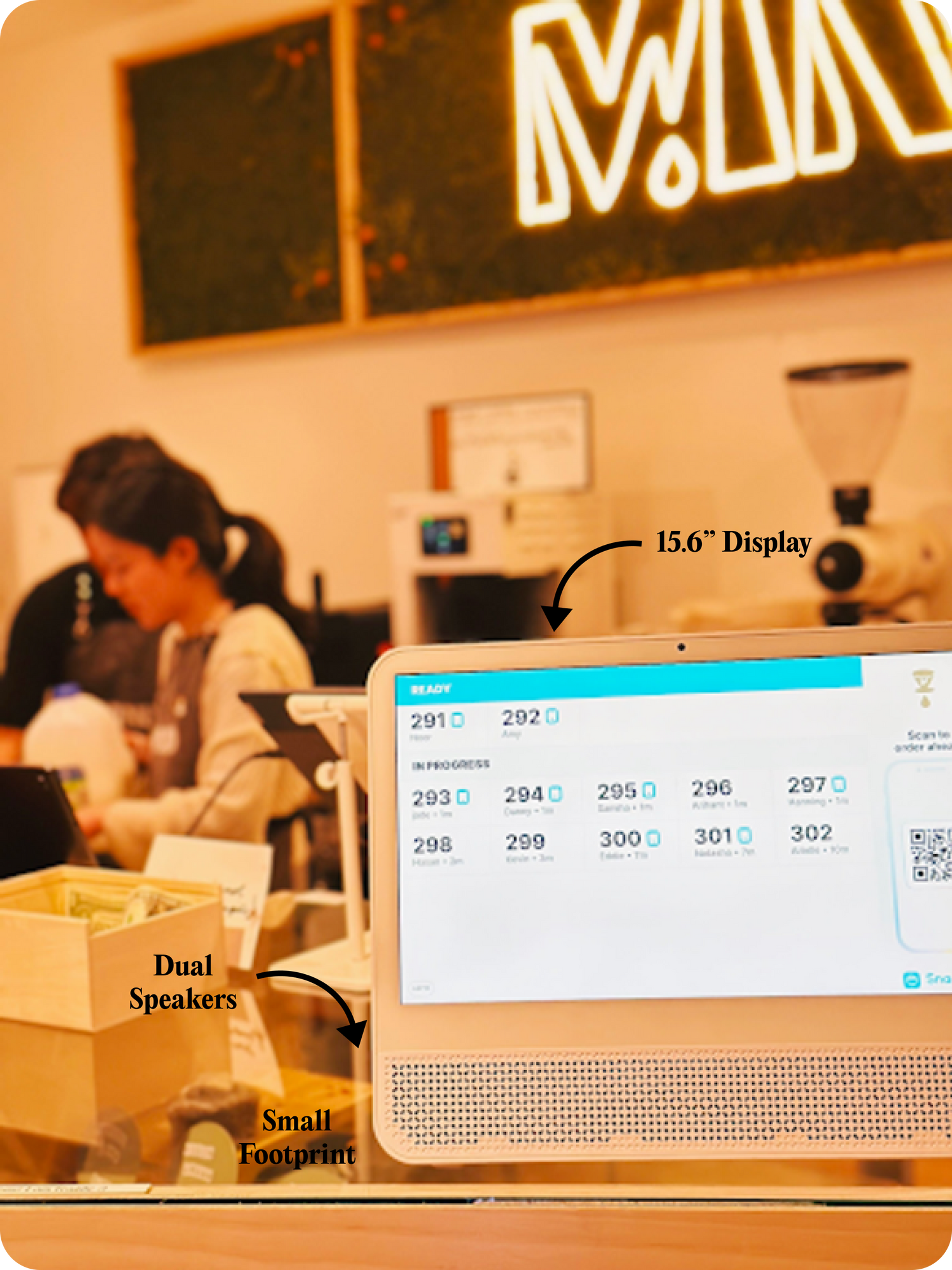A compact solution designed to elevate customer experience with its small footprint, real-time order status updates, and order announcements. This innovative screen is tailored to provide convenience and efficiency for both customers and staff, ensuring smooth order pickups.