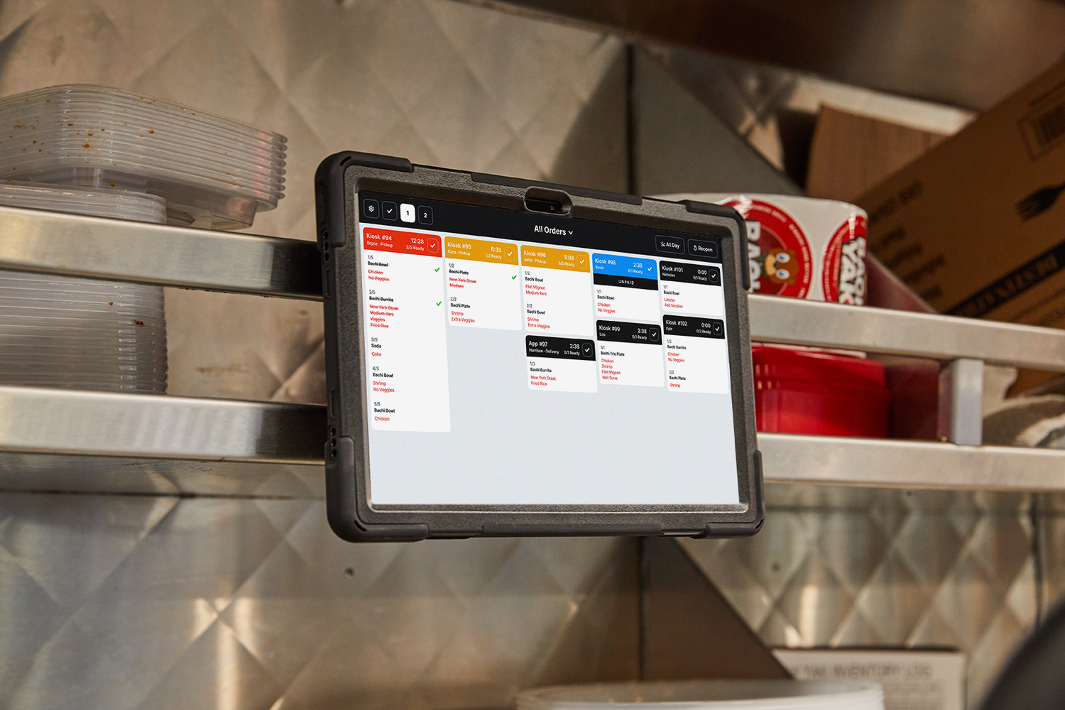 The SnackOS Food Truck tablet allows for operations management within a food truck from tracking orders to a kitchen display screen.