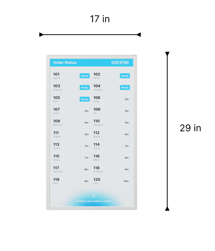 Clamp-Mount Order Ready Screen