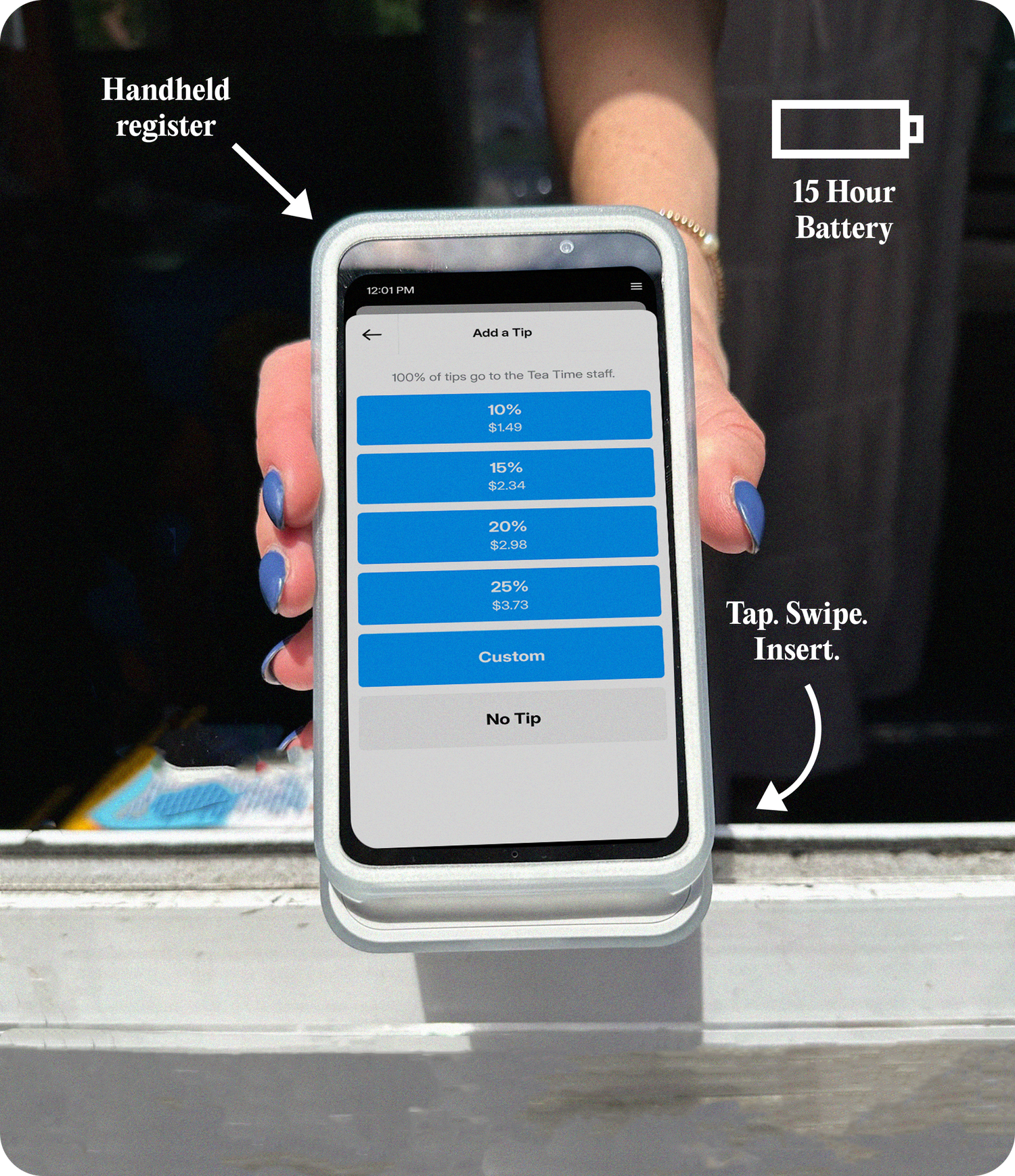 Accept payments anywhere with the Snackpass Handheld Register. Featuring a built-in card reader that supports tap, insert, and swipe, this compact device gives staff a fully mobile checkout experience. Its lightweight design makes it easy to carry throughout the day, while the included charging station enables quick docking and undocking—keeping the device powered and ready whenever your team needs it.