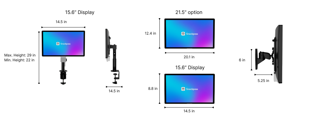 Please see product dimensions if you have questions or concerns about Snackpass products fitting in your restaurant or kitchen.