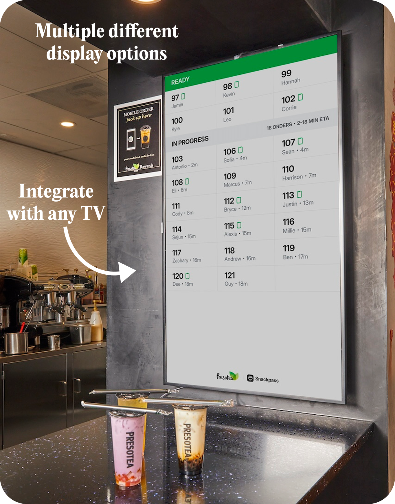 The SnackTV Dongle brings flexibility and clarity to your digital signage. Designed to work seamlessly with most HDMI-compatible screens, turning any display into a powerful communication tool. With Dynamic Menu Board Channels, you can showcase menus, promotions, and updates in real time. When paired with your Kitchen Display System (KDS), the Customer Ready Screen provides live order status updates—keeping guests informed and improving the pickup experience.